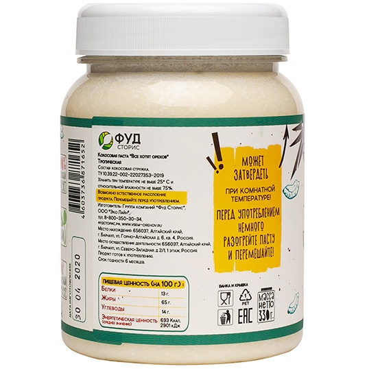 Фудсторис Кокосовая паста "Все хотят орехов" Тропическая, 330 г
