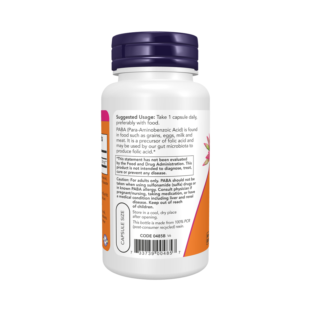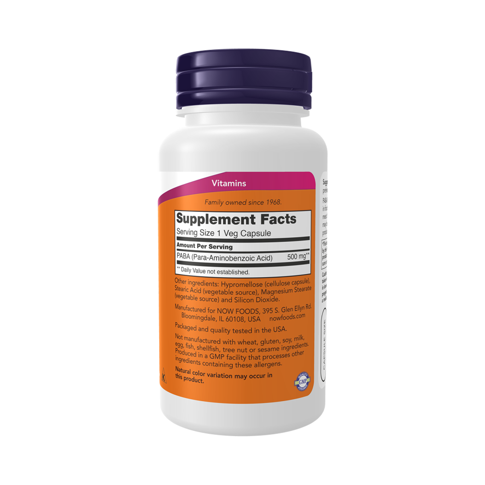 NOW PABA 500 mg, Парааминобензойная кислота (PABA), 100 капсул